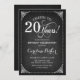 Elegant vintage black and white design with chalkboard pattern. Features script font. Cheers to 20 years! Can be personalized into any age! Message me if you need further customization.