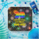 This eye-catching and bold birthday-themed paper plate design features a large number “20” with a colourful rainbow spectrum inspired gradient pattern, along with the message “HAPPY 20th BIRTHDAY,”, and an editable name. The background of the front has a cheerful, colourful, bursting celebratory fireworks-inspired pattern. Birthday themed paper plates like this might be fun to use at a party being held for somebody who is celebrating their 20th birthday. [~Z0000604]