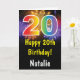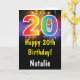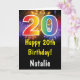20th Birthday Colourful Rainbow Fireworks Card with personalised name. For further customisation, please click the "Customise it" button and use our design tool to modify this template.