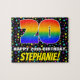 This vibrant and cheerful birthday-themed jigsaw puzzle design features a large number “20” having a multicolored rainbow spectrum inspired gradient pattern. It also features the message “HAPPY 20th BIRTHDAY,”, and a personalised recipient name. The background features an eye-catching, colourful star field pattern. A bold, customised birthday puzzle like this might be a fun way to send birthday wishes to somebody who is celebrating their twentieth birthday. [~Z0000607]