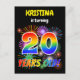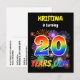 The front of this fun and exciting birthday party invitation postcard design features an editable name, a lively bursting celebratory fireworks inspired pattern, and the message "20 YEARS OLD!" having a colourful rainbow spectrum inspired gradient pattern. The back features a personalised message with information about the party, such as when and where it is being held. Invitation postcards like this could be sent to potential attendees of a party being held to celebrate the birthday of somebody who is turning 20 years old. [~Z0000452]