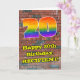 This exciting and vibrant urban street art and graffiti inspired birthday greeting card design features a large number “20” having a multicolored rainbow spectrum gradient inspired pattern. It also features the message “Happy 20th Birthday,”, and a personalised name. The background of the front has a brick wall pattern. The inside has a customised birthday greeting message, or could perhaps be cleared and left blank if a message is to be written by hand instead. A colourful, customised birthday greeting card like this might be sent in celebration of somebody’s twentieth birthday. [~Z0000586]