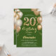 20th Birthday Green and Gold Balloons Confetti Invitation