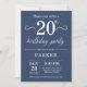 20th Birthday Invitation with Blue Background. Adult Birthday. Men or Women Bday Invite. 13th 15th 16th 18th 20th 21st 30th 40th 50th 60th 70th 80th 90th 100th, Any age. For further customisation, please click the "Customise it" button and use our design tool to modify this template.