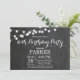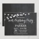 20th Birthday Invitation with String Lights Chalkboard Background. 13th 15th 16th 18th 21st 30th 40th 50th 60th 70th 80th 90th 100th, Any age. For further customisation, please click the "Customise it" button and use our design tool to modify this template.