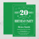 20th Birthday Invitation Green and White Typography. Green and White Background. Adult Birthday. Male Men or Women Birthday. Kids Boy or Girl Lady Teen Teenage Bday Invite. 13th 15th 16th 18th 20th 21st 30th 40th 50th 60th 70th 80th 90th 100th. Any Age. For further customisation, please click the "Customise it" button and use our design tool to modify this template.