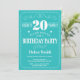 20th Birthday Invitation Teal and White Typography. Teal and White Background. Adult Birthday. Male Men or Women Birthday. Kids Boy or Girl Lady Teen Teenage Bday Invite. 13th 15th 16th 18th 20th 21st 30th 40th 50th 60th 70th 80th 90th 100th. Any Age. For further customisation, please click the "Customise it" button and use our design tool to modify this template.