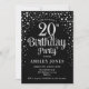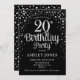 20th Birthday Party - Black & Silver Invitation