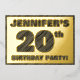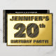 The front of this bold twentieth birthday party/celebration foil invitation card features a customisable name, a large number “20th”, the message “BIRTHDAY PARTY!”, and a border, all featuring a rustic, yet sophisticated, faux wood grain appearance inspired pattern. The back features personalised details about the event, such as the date, time, venue/place, and any other information that may be useful. Personalised invitations like these might be used to invite attendees/guests to a birthday party being held to honour somebody’s 20th birthday. [~Z0000595]