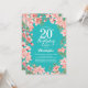 20th Birthday Pink Floral Flowers Teal Background Invitation