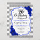 20th Birthday - Royal Blue Silver White Stripes Invitation