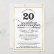 20TH WEDDING ANNIVERSARY classy stylish gold black Invitation