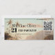 A beautiful sea side image is the background for this Boarding Pass Destination Tropical Palm island beach invitation.