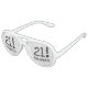 Birthday party shades with white lenses, black text that reads 21 Beware!