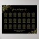 21 Table Wedding Seating Chart Black & Gold Frills