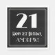 This vintage style and Roaring Twenties inspired birthday-themed paper napkin design features a large art deco look inspired number "21", the message "Happy 21st Birthday,", a personalised name, and a border pattern consisting of thin lines. Birthday themed paper napkins like this might be used at a party celebrating somebody’s twenty first birthday. [~Z0000461]