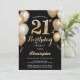 21st Birthday Black and Gold Balloons Confetti Invitation