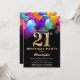 21st Birthday Black and Gold Colourful Balloons Invitation