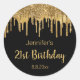modern chic happy birthday black gold multi dripping glitters stickers.