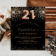 A modern, stylish and glamorous invitation for a 21st birthday party. A black background decorated with faux glitter. The name is written with a modern golden colored hand lettered style script. Personalize and add your party details. Number 21 is written with a balloon style font, script.
