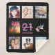 A gift for a woman's 21st birthday, celebrating her life with a collage of 8 of your photos. Templates for a name, age 21 and a date. Date of birth or the date of the anniversary. Pink and purple coloured letters. Black coloured background.