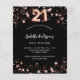 A classic black background, decorated with rose gold stars. Personalise and add a name and party details. Number 21 is written with a balloon style script.