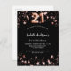 A classic black background, decorated with rose gold stars. Personalise and add a name and party details. Number 21 is written with a balloon style script.