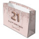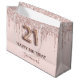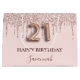 Elegant, classic, glamourous and girly for a 21st birthday party. A chic blush pink background. Decorated with pink faux glitter drips, paint dripping look. Personalise and add a name. With the text: Happy Birthday. The name is written with a modern hand lettered style script. Number 21 is written with a balloon style font.