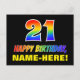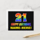 21st Birthday: Bold, Fun, Simple, Rainbow 21 Postcard