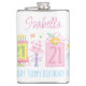 A pretty feminine party flask with the custom number 21 on birthday cakes and presents for any 21st birthday. Make it personal by adding the birthday girls name