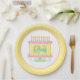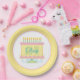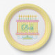 A pretty feminine paper party plate with the custom number 21  on a yellow birthday cake and for any 21st birthday.  Make it personal by adding the birthday girl's name.
