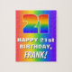 This exciting and joyful birthday-themed jigsaw puzzle design features a large number “21” having a colourful rainbow spectrum inspired gradient pattern. It also features the message “HAPPY 21st BIRTHDAY,”, and a customisable recipient name. The background also features a fun multicolored rainbow spectrum inspired gradient pattern. A cheerful, customised birthday puzzle like this might be a fun way to send birthday greetings to somebody who is celebrating their twenty-first birthday. [~Z0000569]