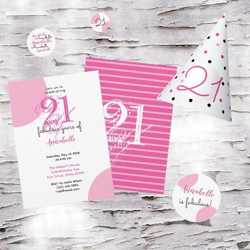 Celebrate with Personalised 21st Birthday Party Supplies. Pink, Black and White 21 pattern with your Custom Message.