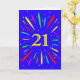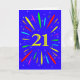 An explosive 21st birthday card! What a wonderful way to send birthday greetings. The number 21 in bright yellow with an explosion of bright colours and stars.