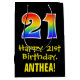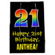 This colourful, exciting, and fun birthday themed giftbag design features a large number "21" with a rainbow spectrum gradient style pattern, along with the message "Happy 21st Birthday,", and an editable recipient name. It also has a black-coloured background. A birthday themed gift-bag like this might be a fun way to wrap a gift or present being given to somebody who is celebrating their 21st birthday. [~Z0000512]