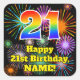 21st Birthday: Fun Fireworks Look, Rainbow # 21 Square Sticker