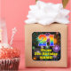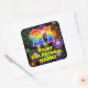 This exciting and fun birthday square sticker design features a large number “21” having a colourful rainbow spectrum gradient inspired pattern. It also features the message “Happy 21st Birthday,”, and a personalised name. The background features a vibrant and colourful bursting celebratory fireworks inspired pattern. Vibrant, fun, personalised stickers like this might be given as a birthday gift, or used while wrapping presents, or perhaps used as a birthday party decoration when celebrating somebody’s twenty first birthday. [~Z0000579]