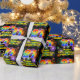 This exciting and cheerful birthday themed wrapping paper design features a large number “21” with a colourful rainbow spectrum gradient inspired pattern, along with the message “Happy 21st Birthday,”, and a personalised name. The background features a vibrant and colourful pattern inspired by the appearance of bursting celebratory fireworks. Birthday themed wrapping paper like this might be used when giving a gift or present in celebration of somebody’s twenty first birthday. [~Z0000587]