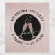 On a delicate blush pink background, our 21st Birthday wine bottle labels feature blush glitter ombre overlays on top and bottom for added bling. Inside a black and rose gold circle logo, bubbling sparkling wine glasses touch in a toast to the birthday honoree. Text circled around the logo reads "Milestone Birthday" and "A Toast to 21 Years." You can easily revise the honoree's name and birthday year number on the personalisation template. PLEASE NOTE: Make sure to retain the code boxes to keep the swashes intact.