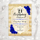 21st Birthday - Gold Stripes Royal Blue Roses Invitation