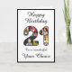 The front of this classical themed 21st birthday greeting card design features the number "21" filled in with 9 of your photos. The message "Happy Birthday," sits at the top with the two lower sets of text available for you to personalized. Make this a unique custom card for your best friend, daughter, partner, goalkeeper etc, the choice is yours. The inside features a personalized birthday greeting messages on both pages, or could perhaps be cleared and left blank if a message is to be written by hand instead. A customizable photo birthday card like this is a fun way to send a message in celebration of somebody’s twentieth birthday. The photo's used as examples are all square images with the main figure approximately central. The design is available in a full range of sizes right up to the giant size card. Pop in to our store for more great birthday cards and gift ideas.