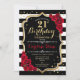 Elegant black white red design with faux glitter. Black and white stripes with red roses. Perfect for an elegant birthday party.