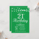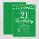 21st Birthday Invitation with String Lights. Green Background. Men or Female Lady Elegant bday Invite. 13th 15th 16th 18th 20th 21st 30th 40th 50th 60th 70th 80th 90th 100th, Any age. For further customisation, please click the "Customise it" button and use our design tool to modify this template.