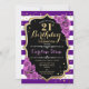 21st birthday invitation for women. Elegant purple design with faux glitter gold. Milestone adult birthday invite card featuring stripes, purple roses and script font. Perfect for a stylish bday celebration.