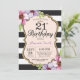 21st Birthday Invitation for women. Black and Gold Birthday Party Invite. Gold Glitter. Purple Watercolor Floral Flower. Black and White Stripes. Printable Digital. For further customisation, please click the "Customise it" button and use our design tool to modify this template.
