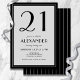 Celebrate turning twenty-one in sophisticated style with this black and light grey 21st birthday invitation for men or women. Designed with bold typography on a sleek minimalist layout, it blends modern elegance with timeless appeal. The back features clean black and grey stripes for a refined, polished finish. Perfect for an adult milestone birthday, formal dinner, or chic cocktail party, this customisable invite sets the tone for an unforgettable 21st celebration. Personalise with your event details for a stylish, gender-neutral design ideal for modern milestone birthday party.