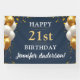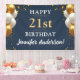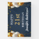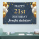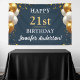 Celebrate in style with our 21st Birthday Navy Blue and Gold Celebration Banner! This elegant banner is designed with a striking black background accented by shimmering gold details, creating a luxurious and festive ambiance. Perfect for a milestone celebration, it features customisable text to honour the guest of honour, adding a personal touch to the décor. Ideal for both indoor and outdoor settings, this durable banner makes a statement while setting the tone for an unforgettable celebration.