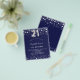 A modern, stylish and glamourous invitation for a 21st birthday party. A navy blue background, decorated with faux silver stars. Personalise and add your name and party details. Number 21 is written with a balloon style font.