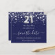A girly and trendy Save the Date card for a 21st birthday party. A navy blue coloured background. Decorated with faux silver stars. The text: Save the Date is written with a large trendy hand lettered style script. Number 21 is written with a balloon style font.