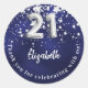 21st birthday navy blue silver stars classic round sticker